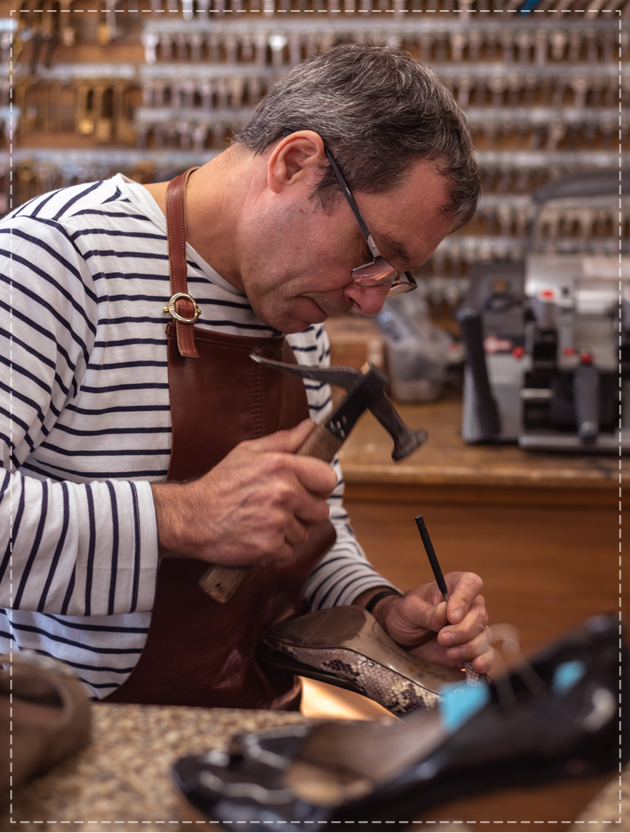 Cordonnier de métier et passionné de souliers, c'est laisser vos articles entre de bonnes mains afin d'entretenir et prolonger leur durabilité. Nous établirons avec vous un devis au plus juste afin que vous puissiez profitez pleinement de notre savoir-faire.